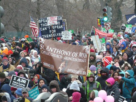 More than 500,000 thousand marchers braved the snow and winter temperature in the low 20s to publicly profess their conviction that the life of the unborn child is sacred and therefore has value.