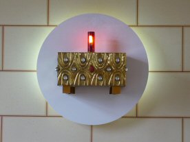 The Priest Approaches and Kisses the Altar:  The altar is a symbol of Christ.  In it are cut five crosses to recall the five wounds of Christ.  The altar also represents the Church and has embedded in it the relics of her saints.  The priest comes to the altar to celebrate the Sacrifice in the Church's name.  Because of the glory surrounding the altar upon which the divine Sacrifice will be made, the kiss of the priest unites the Church to Christ, its Redeemer.