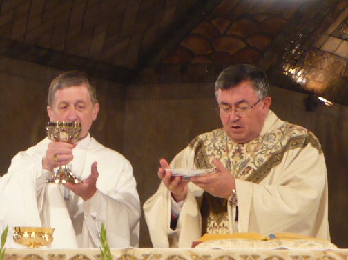 Priest: May this mingling of the Body and Blood of our Lord Jesus Christ bring eternal life to us who receive it.