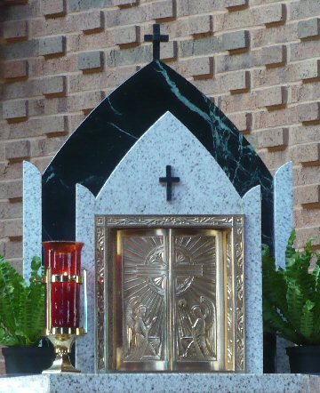 The Priest Approaches and Kisses the Altar:  The altar is a symbol of Christ.  In it are cut five crosses to recall the five wounds of Christ.  The altar also represents the Church and has embedded in it the relics of her saints.  The priest comes to the altar to celebrate the Sacrifice in the Church's name.  Because of the glory surrounding the altar upon which the divine Sacrifice will be made, the kiss of the priest unites the Church to Christ, its Redeemer.